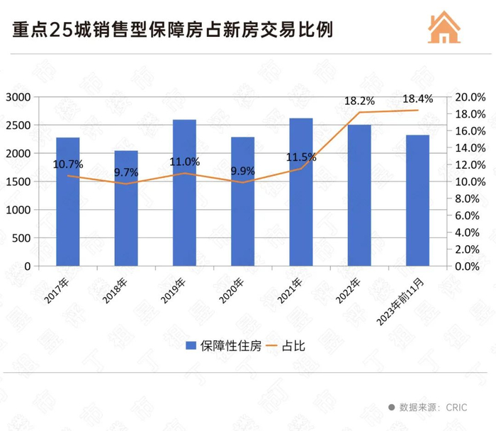 据CRIC测算,2025年销售型保障房占新房交易的比例或进一步突破二成。