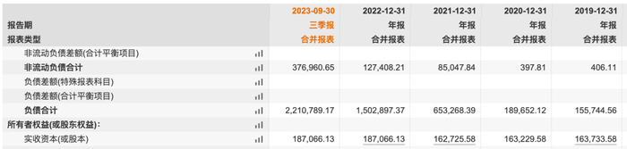 截止2023年9月末,双良节能负债规模221.08亿元,较2020年末期的18.97亿元大幅增加202.11亿元,短期借款、应付款项、合同负债均大幅增加,2021年开始产生长期借款。