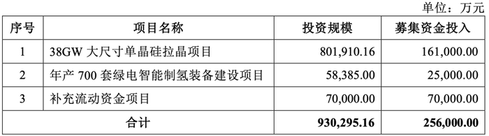本轮定增,双良节能拟向不超过35名特定对象,非公开发行不超过5.61亿股(含本数)股票,限售期6个月,募集资金总额不超过25.6亿元,分别投入到38GW大尺寸单晶硅拉晶项目、年产700套绿电智能制氢装备建设项目及补充流动资金。其中用于补流资金金额7亿元,占比约27%。