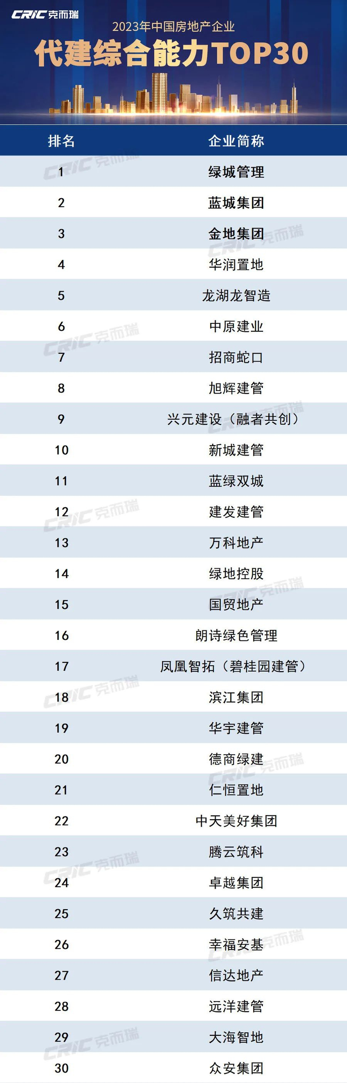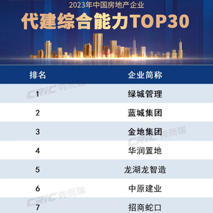 重磅 | 2023年中国房地产企业代建综合能力排行榜发布!