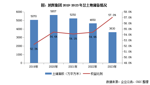 截至2023年底,旭辉共有土地储备3630万平方米,较于期初减少了21.9%,总土储的权益比例相较于年初提升至57%,仍然处于较低水平。总土储中,已完工未出售建面为728万平方米,同比减少了17.3%,对应的持作出售的已竣工物业存货为216.66亿元,同比减少了7.6%;开发中建面为2676万平方米,同比减少了29%,对应的拟作销售的开发中物业存货为966.03亿元,同比减少了39.9%。