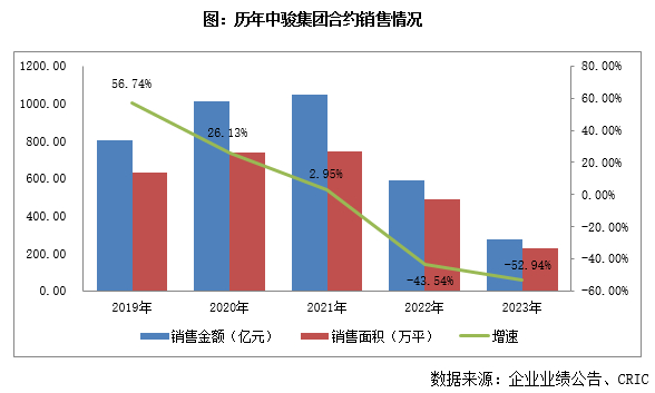 2023年,中骏集团(含合营联营公司)共实现累计合同销售金额约278亿元,同比下降52.9%;累计合同销售面积229万平方米,同比下降53.3%;全年平均销售价格为每平方米12129元,与2022年大致持平。其中,合联营公司部分的销售金额约为45亿元,同比下降63.6%,约占总销售的16%;权益销售金额占比约82%。