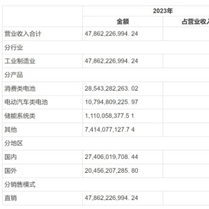 据其报显示,受消费电子市场需求下降影响,2023年欣旺达消费类电池营收为285.43亿元,同比下降10.85%,仍是其核心业务板块,占总营收的59.64%。