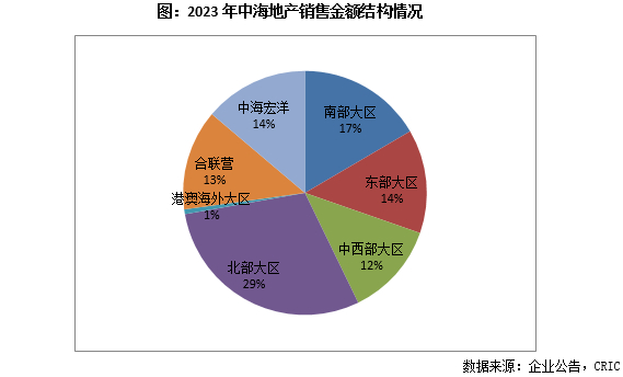 从销售结构来看,2023年中海地产(中海地产及附属公司)合约销售金额达2257亿元,同比上升3%;而合联营及中海宏洋部分的合约销售金额达841亿元,同比上升11%。
