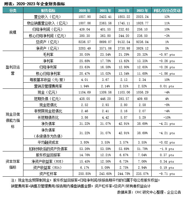 2023年,房地产市场经历短暂小阳春后持续下行,下半年的销售压力尤为明显。在此背景下,不少房企的利润出现了下跌,中海地产依然实现了利润规模的淡市增长,但利润率指标有所下滑,但毛利率依然维持20%以上,净利率维持10%以上,属于行业前列