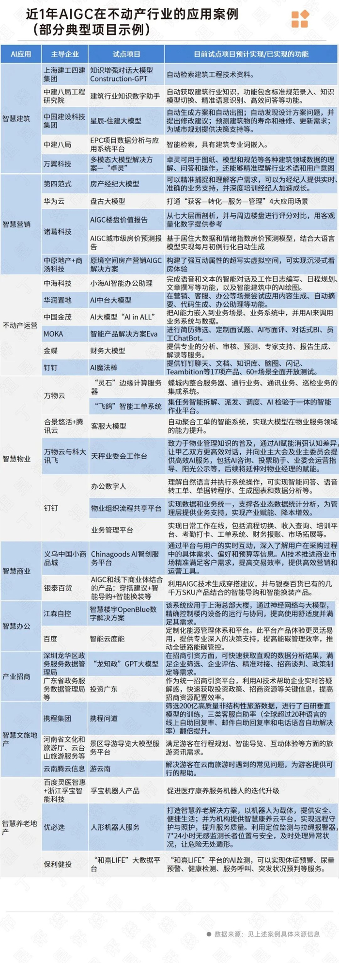 以下为AI在不动产行业细分领域的试点应用案例,可以看出不动产行业逐步跨入人工智能时代。
