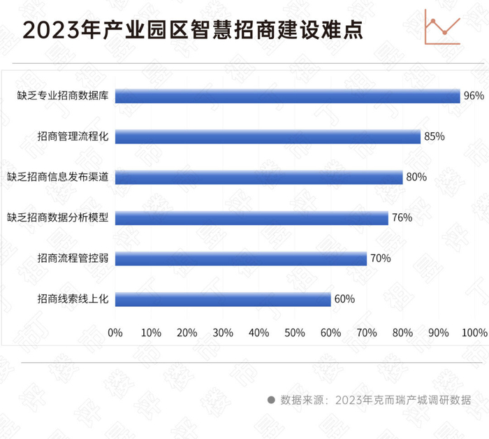产业招商建设存在诸多难点,从克而瑞产城调研数据来看,缺乏专业招商数据库、招商管理流程复杂、缺乏招商信息发布渠道等成为三大难题。