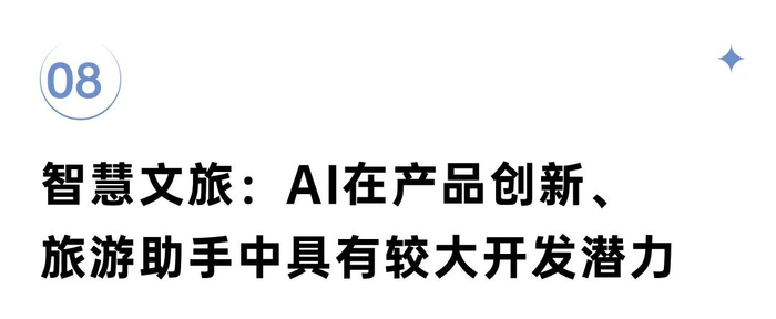 随着AIGC技术应用的深化,将推进智慧文旅地产在旅游数据、旅游服务、智能客服、行程规划、智能导览、互动体验、营销服务等方面旅游需求,为游客提供更人性化的景点知识讲解、可行的帮助和对话旅游助手等产品,预计在未来继续推动文旅地产行业的创新和变革。