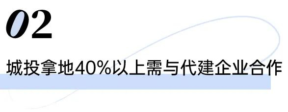 这意味着城投拿地之后独立开发的能力和意愿均较弱。多数城投依然需要以盘活资产为主,寻求合作开发、代建、转让等机遇。在此背景下,将推动行业加速探索城投与代建企业合作模式。