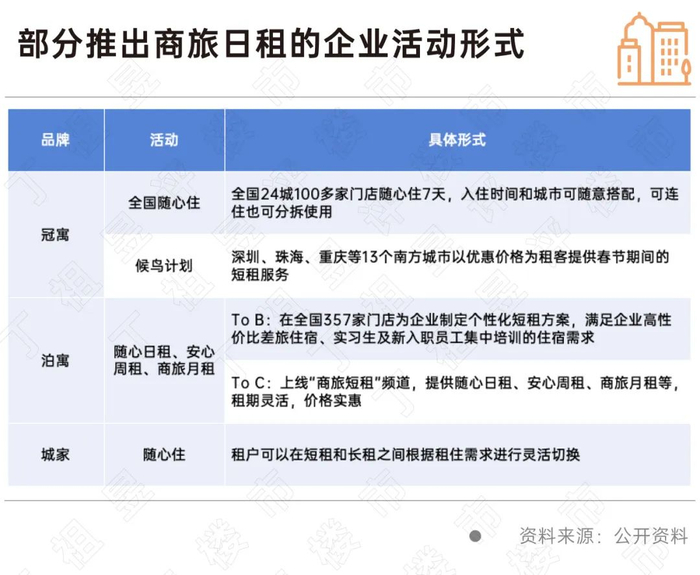 有些专注于长租的住房租赁品牌开始推出商旅短租业务,将原有公寓的部分楼层拆分出短租房间,为租客提供便利的住宿选择。