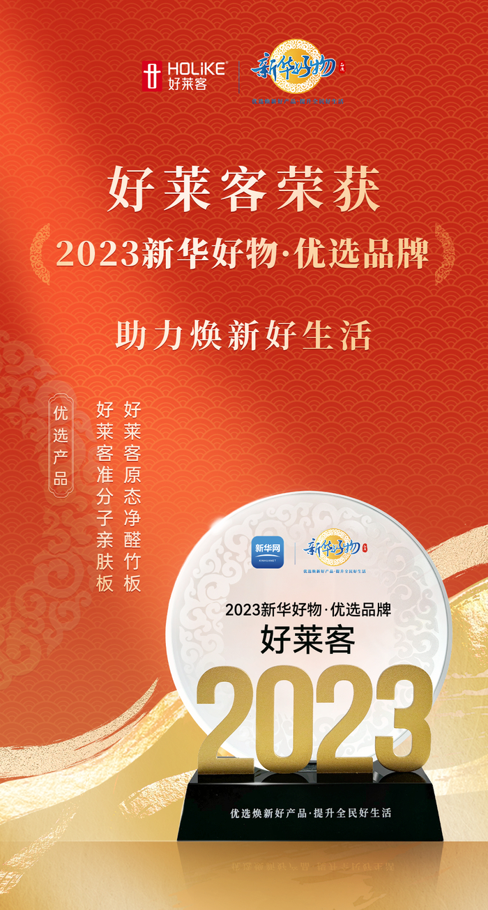 好莱客作为中国定制家居行业的引领者,2024年连续荣获新华网及人民日报等权威央媒的重磅奖项,获国家层面的肯定及点赞,想必这是对今年中国品牌日的最好致敬:2024年喜获新华网推荐,入选“2023新华好物·优选品牌”,旗下产品“原态净醛竹板”、“准分子亲肤板”也分别荣登新华好物“绿色之选”、“健康之选”榜单;并于今年4月成功登上人民日报,成为人民日报推荐的国货发光品牌,以绿色高品质家居产品及全民普惠行动,焕新国人美好生活。