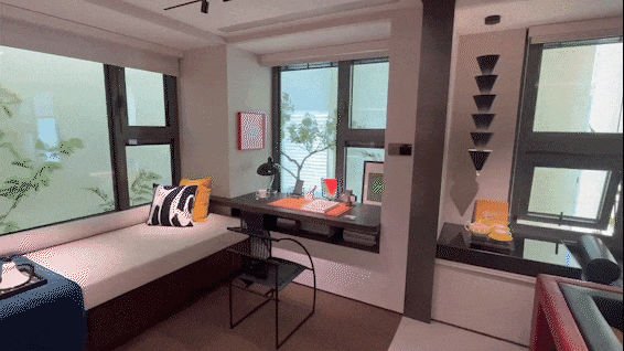用专业的术语来说,这么多的窗,其实组成了L型转角大飘窗,最终拥有270°的超级广袤视野。阳光和空气也将大量引入室内,整个人在这样明媚的空间,整个人的心情也变得非常愉悦。
