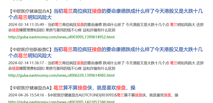 然而,顶流葛兰却持续被基民质疑高位接盘。直接上几张截图: