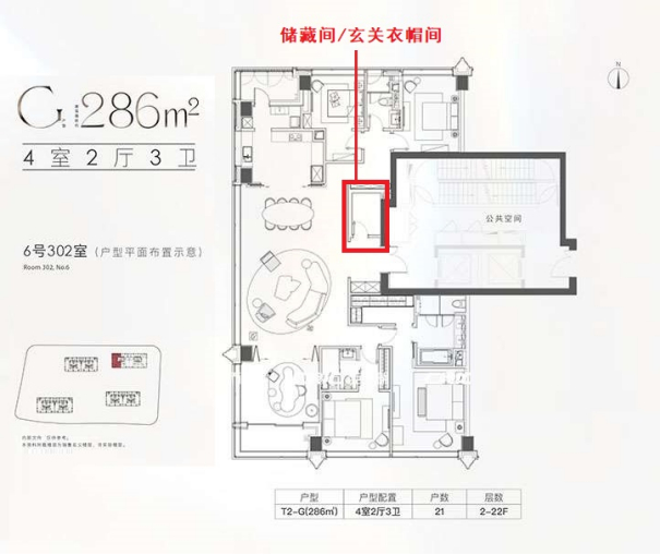 对于目前上海市场的豪宅产品而言,兼顾尺度与功能也很重要。上海融创外滩壹号院二期的286平方米户型在玄关处巧妙设置了储藏室。这一空间不仅满足了收纳需求,更可化身为入户衣帽间,便于日常更换衣物与鞋履,细致入微地关照了豪宅居住者的日常便利。