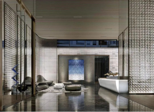 徐汇滨江香港置地启元,突破了传统住宅公区设计的常规,采用了转角、切割、圆弧等复杂设计手法,巧妙地将艺术美学与公区设计相结合。不仅为高净值人群提供了一个视觉上的享受,更满足了他们对人文艺术精神层面的深度需求。