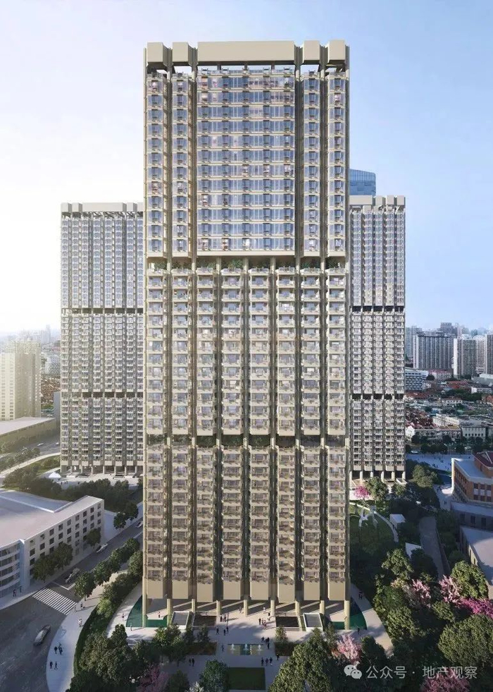 项目包括13万㎡的住宅以及一座市五中学历史保护建筑、一栋精品酒店,建筑风格是早前流行的Artdeco,是由Portman Architects和日本NIKKEN SEKKEI以及博埃里建筑设计咨询有限公司共同设计。