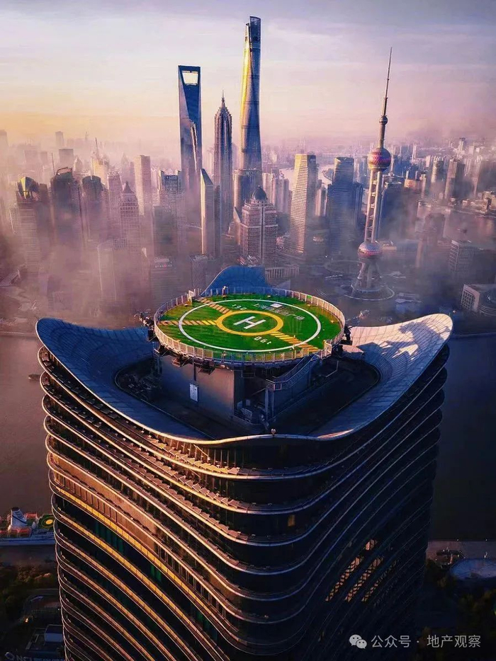 在1号楼的楼顶有一个直升机停机坪,有私人飞机的客户终于能有机库了。而且每栋楼的顶层都设有天际会所,空中酒吧,站在这里几乎能俯瞰整个上海的繁华。