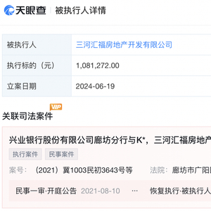 据天眼查,汇福地产法定代表人为王晓刚,注册资本为1亿元,经营范围包含:房地产开发,建筑施工,建设规划设计(凭资质证施工)等。该公司由石克荣、石晟阳分别持股76.62%、23.38%。目前,该公司有1条被执行人记录,执行金额约108万元。