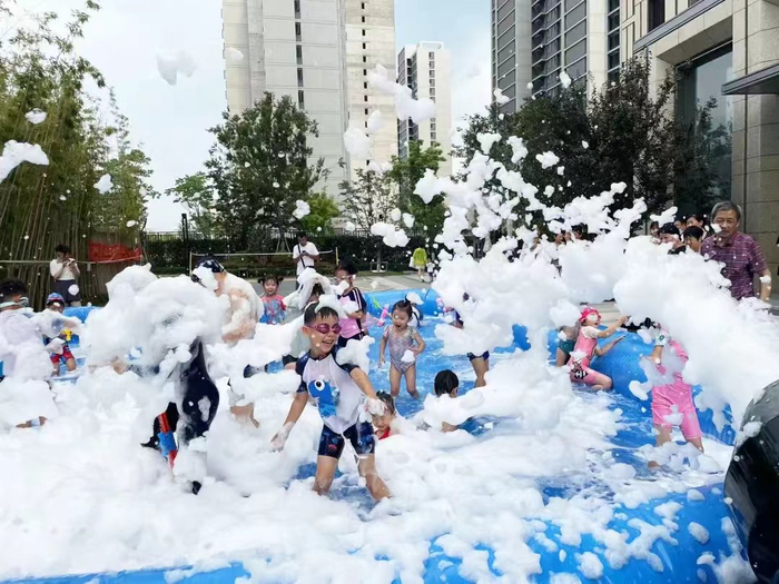 除了“融佑未来”,融创服务发起多种类型的儿童社群。“小鱼儿合唱团”、“儿童跳蚤市集”、“插秧吧少年”、“魔法书语小屋公益阅读”、“听老兵讲故事”、“了不起的小孩儿傲运会”、“泡沫泳池趴”“少年篮球公开赛”……丰富多样的融乐学堂和户外活动日常开展,加强孩子主体间的交流。