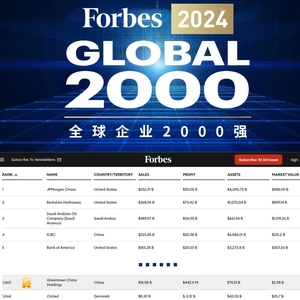 “2024福布斯全球企业2000强”榜单