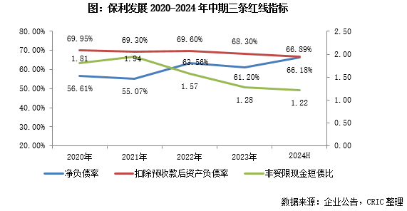 2024上半年,保利发展销售额排名稳居行业第一,拿地节奏放缓,财务仍然稳居绿档。