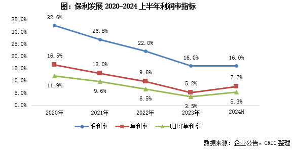 与此同时,2024上半年保利发挥规模央企财务优势进行低成本融资,因此让2024年中期企业的综合融资成本相比于期初下降了0.25个百分点至3.31%,融资成本持续处于行业极低水平