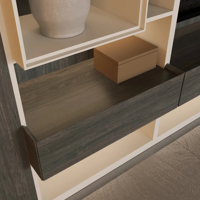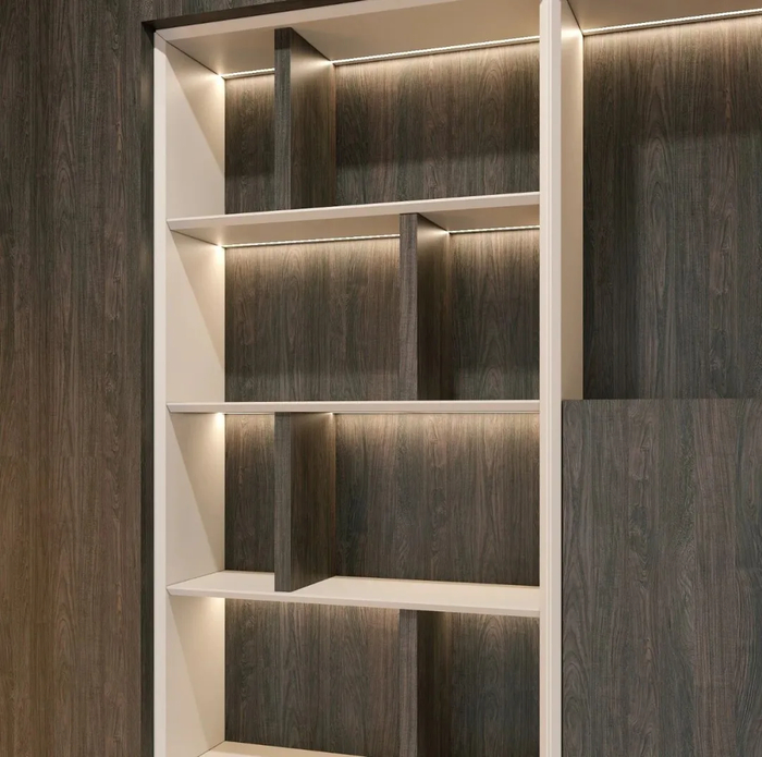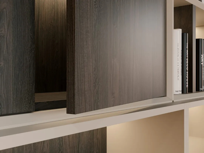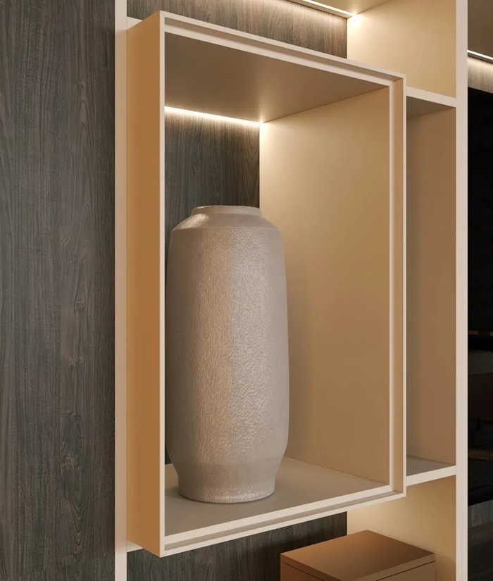 融入精致的大小不一几何方形套框造型,无孔精湛的工艺设计,常用于高端定制产品,不仅可使木材连接处看不出痕迹,同时具有快速拆卸及较强的承重能力,大大提升开放柜颜值,安全呵护。