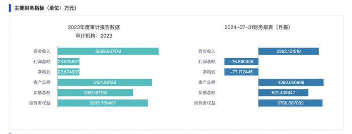 据2024年7月31日财务报表显示,标的企业营业收入为2362.1万元,净亏损77.17万元,资产总额4380.03万元,所有者权益3758.59万元。