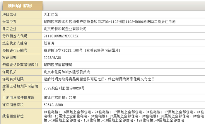 项目开发主体北京朝新和筑置业有限公司,成立于2023年,中国保利集团成员,位于北京市,是一家以从事房地产业为主的企业。企业注册资本13.73亿元,法定代表人为刘喜涛,公司由保利(北京)房地产开发有限公司持股100%,保利(北京)房地产开发有限公司由保利发展(SH600048)持股100%。