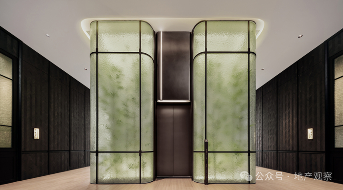随处可见的双面透光水纹玻璃,像绿色的荧光宝石,更像漫步在诗意的竹林里。