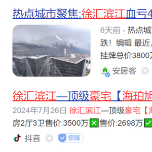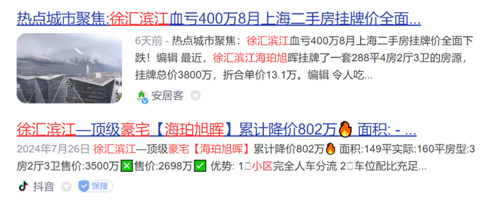 本月初,徐汇滨江的豪宅标杆海珀旭辉小区,一套288平米的房子,总价3800万成交,折合单价13万一平米,相较于高峰时期5000多万的总价,一套跌了1200多万。