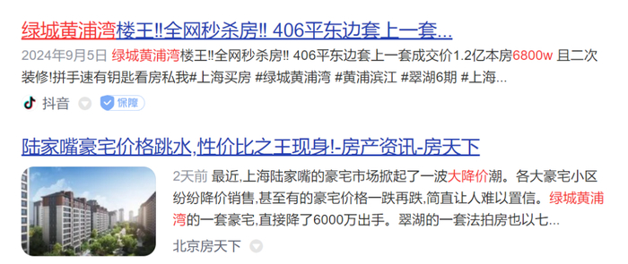 还有云锦东方、汤臣一品、古北壹号、仁恒河滨城,等等,这些豪宅,现在都有业主在大幅降价砸盘。