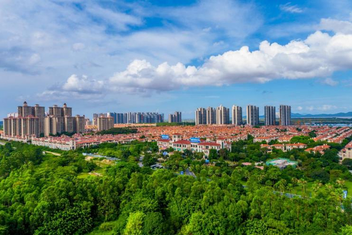 打开粤港澳大湾区地图,深蓝色的海域边,翠亨新区绿色点点。拉近距离,超长海岸线上,敏捷锦绣海湾城大城已现——淡红色屋顶的建筑群落点珠成线,仿佛镶嵌在苍翠中的淡红色手链。
