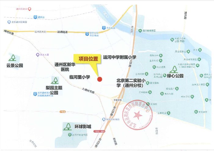 区位图显示,地块紧邻东六环,往南两公里就是环球影城,距离八通线土桥站直线700米。通州老城区配套稍显落后,商业主要是南边的华远好天地,基本能满足日常生活需求;教育资源比较丰富,包括临河里小学、运河中学附属小学、北京第二实验小学(通州分校)。