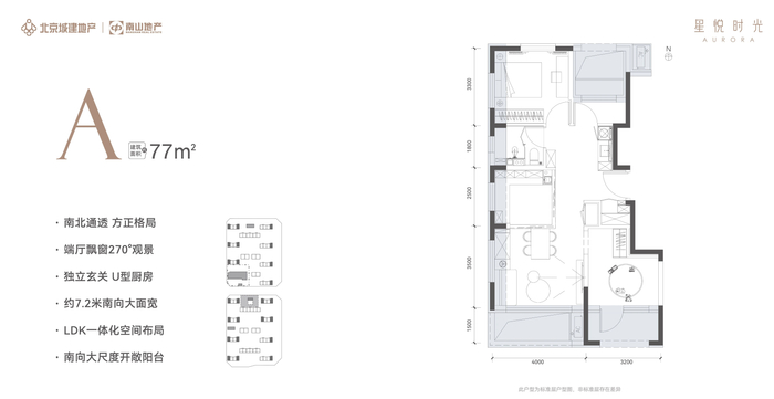 产品定位上,星悦时光以改善高品质打造刚需户型,主力面积段约77㎡、87㎡、107㎡三居四居,其中,77㎡户型占比28%;87㎡主力户型占比60.3%;107㎡户型占比10.4%;另有少量72㎡户型。