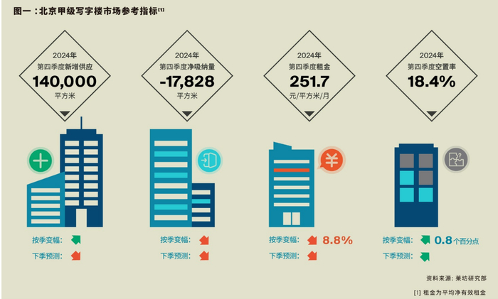2024年第四季度北京甲级写字楼租金环比下降8.8%