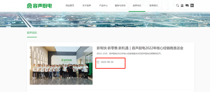 值得一提的是,容声电器官网“容声动态”一栏最新的文章日期是2022年8月26日,近两年未更新。