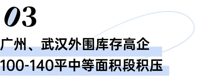 由此可见,广州和武汉中等面积段积压主要源于这部分面积段此前供应严重过量,随着行情转淡,居民购买力降级,客户或持币观望或分流至二手,导致去化不畅。