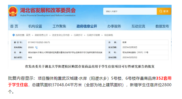 比如今天看到一个消息,湖北大学,直接花了2个亿,采购旁边的商品房,作为学生宿舍。