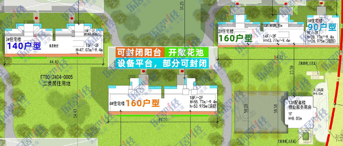 其中东排1#、6#、9#为9-11F洋房,其余均为小高层产品,标准层高3.1-3.2米,部分楼栋有顶退设计。
