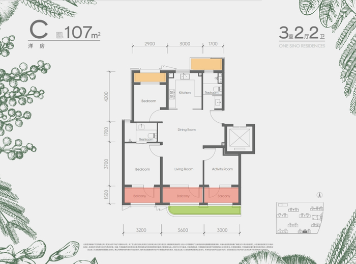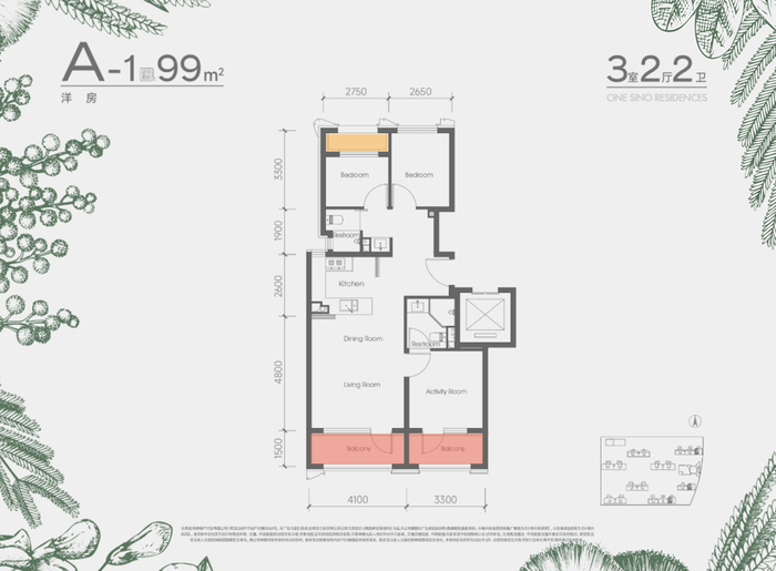 除起步99㎡户型,其余均有南向通面宽阳台+花池设计,北向赠送两个设备台,整体使用率超90%。