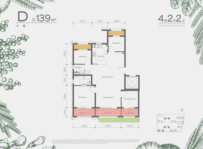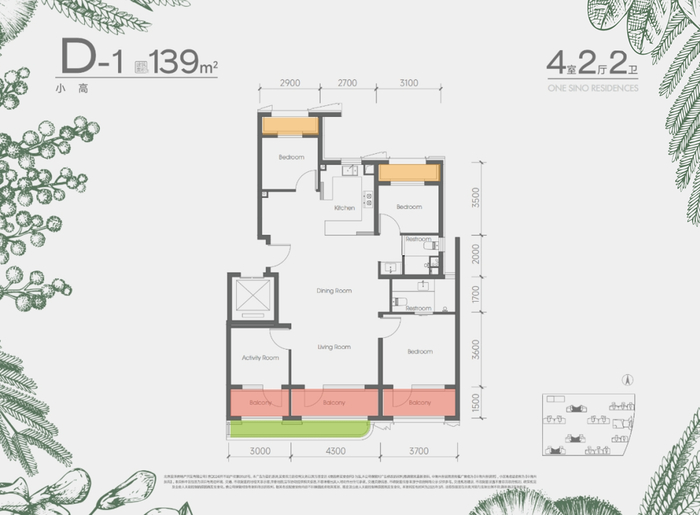 139㎡四居为主力户型,房源占比超三成,刚好与北边的万泉寺项目起步135的大户型产品做出差异化。