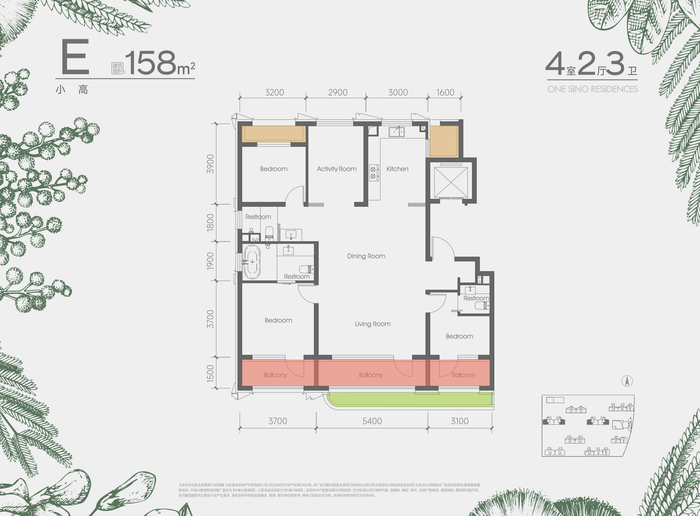 扩容空间方面,南向通面宽内嵌阳台+开敞花池;北侧多个设备平台,部分可封闭为室内空间;3栋洋房西侧有弧形转角设计。