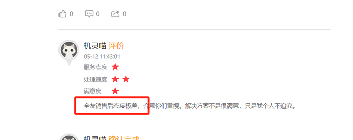 5月12日该投诉进度显示已完成,但消费者评价称“全友销售后态度极差,解决方案不是很满意,只是个人不追究”。