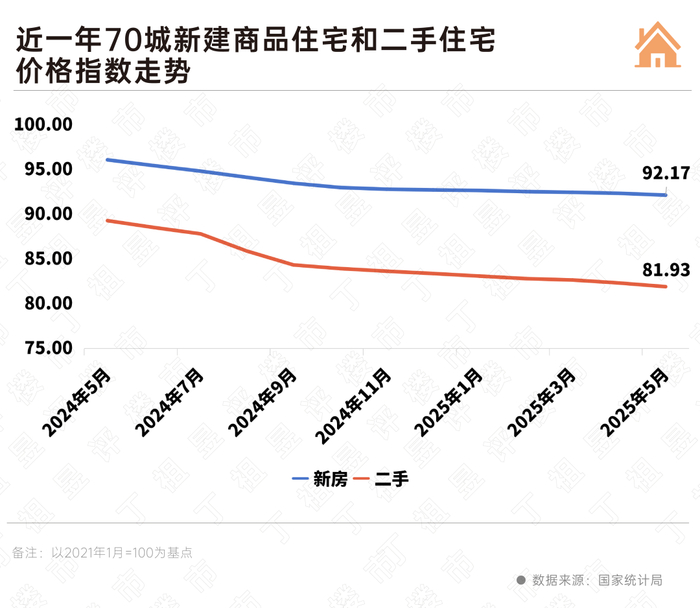 2025年5月份,70个大中城市中,各线城市商品住宅销售价格环比下降,同比降幅继续收窄。