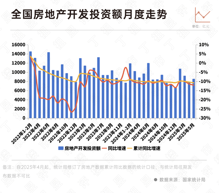1—5月份,全国房地产开发投资36234亿元,同比下降10.7%,5月份房地产开发投资8504亿元,同比下降12%,降幅较3月扩大了0.7个百分点。