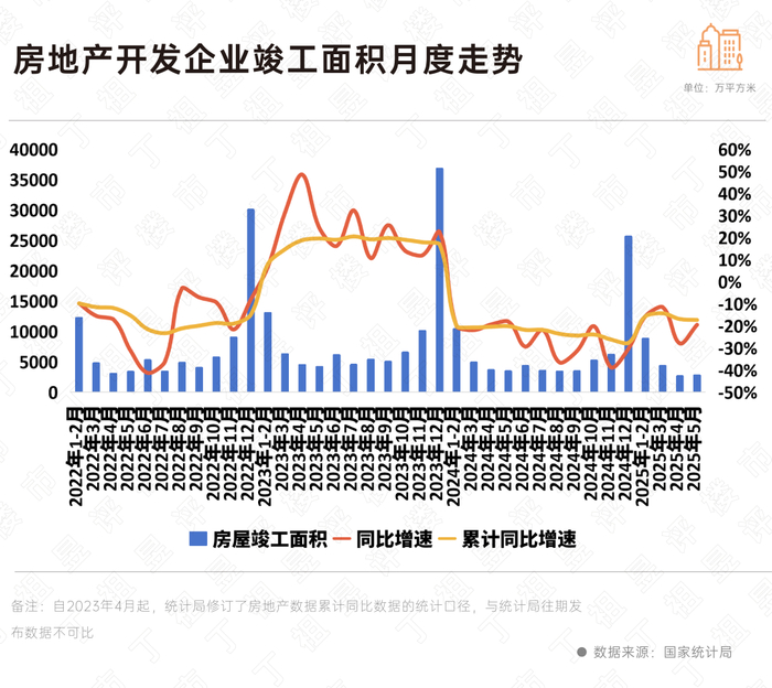 2025年5月,房屋竣工面积2737万平方米,下降19.5%,降幅收窄8.4个百分点。