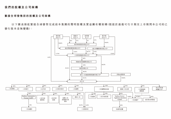 从股权结构来看,张道才、张亚波及张少波通过一致行动及各自控制的实体新昌华清投资有限公司、新昌华新实业有限公司及浙江华腾实业有限公司,截至最后可行日期合共控制三花控股集团有限公司71.98%的表决权。而三花控股集团有限公司持有公司45.31%的表决权。