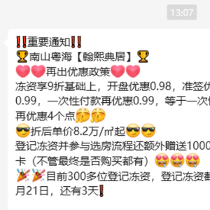 粤进深 严明会 据市场消息,南山区科技园深大旁的桂庙新村旧改项目——翰熙典居还没开盘,已开始降价。