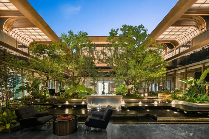 而穿越门楼,进入会所,便能看见寓意四水归堂的下沉空间。